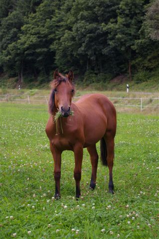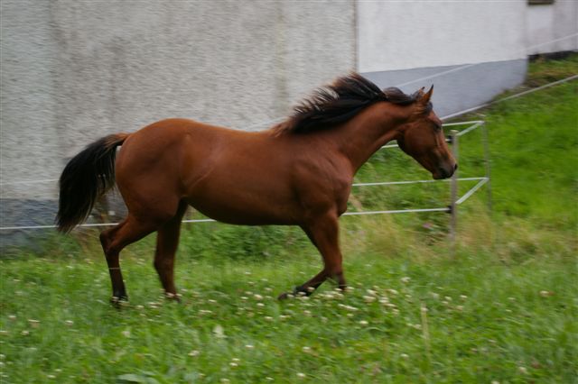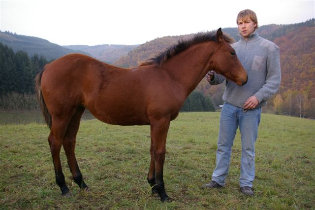 Bei uns wächst sie im Herdenverband auf großen Eifelweiden auf. Wie alle unsere Pferde hat sie eine dem Alter entsprechende Grunderziehung, kennt Schmied und Hänger fahren. Selbstverständlich ist sie durchgeimpft und regelmäßig entwurmt.