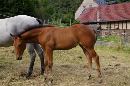 Shannons Spitzname "Turbo" sagt schon viel über sie aus: wendig, spritzig, trittsicher, mit viel Lust an Bewegung und dabei brav im Umgang. Ihr Vater ist ein erfolgreicher Cutter, Doc Bar ist über beide Eltern im Papier! Ihr hübsches Köpfchen, die klaren Beine (mit guten Hufen) und ihre fließenden, katzenhaften Bewegungen machen sie zu einem echten Hingucker und zukünftigen Sportskamerad.