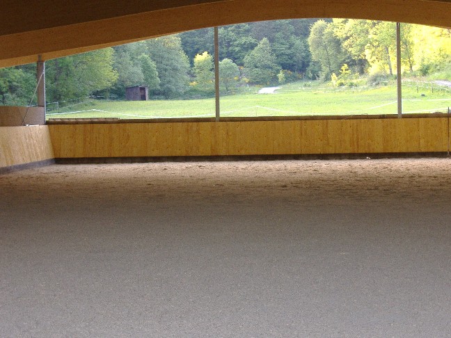 Unsere Reithalle hat die Maße 20 x 42 m und ist mit Windschutznetzen ausgestattet hell und luftig.