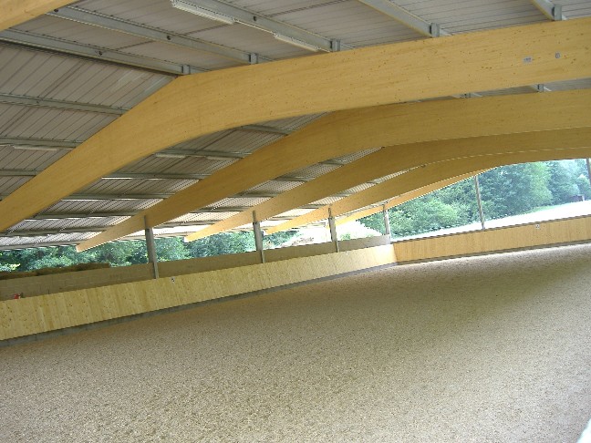 Freuen Sie sich auf unsere schöne, moderne Reithalle! Durch die spezielle Bauweise haben Sie in unserer Halle immer gute Luft und besten Boden!